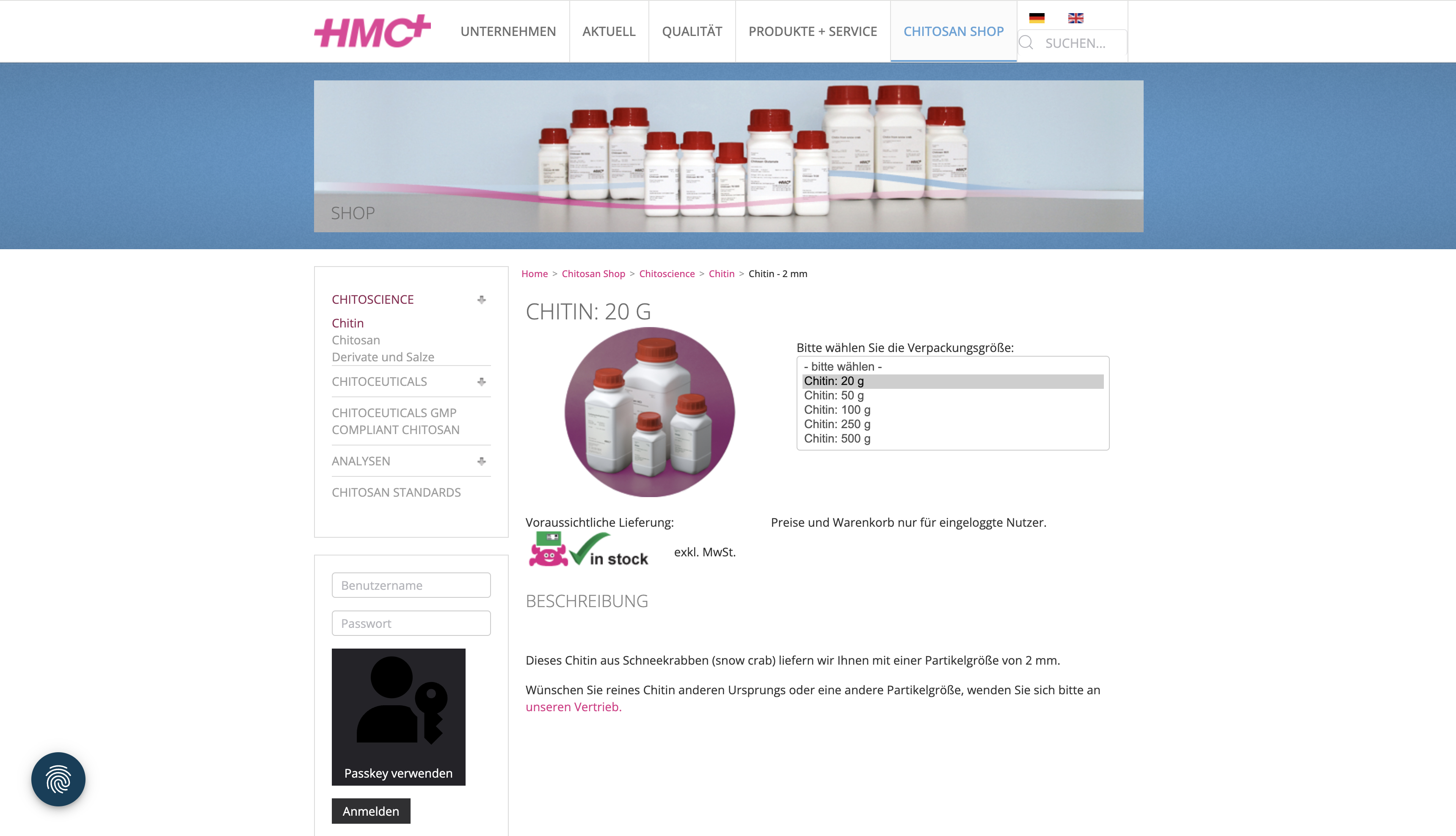 In diesem Internetshop können kleinere Mengen Chitin, Chitosan sowie Chitosan-Derivate schnell und unkompliziert erworben werden. Der Online-Shop steht Geschäftskunden zur Verfügung. Besonders interessant ist der Shop für Entwicklungsabteilungen oder universitäre Forschungsgruppen, die nur geringe…