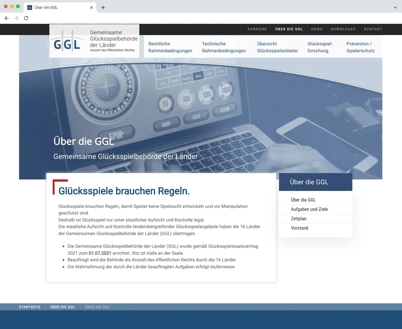 Frisch aus der toolboxx-media Entwicklung: Die Website der GGL - Gemeinsame Glücksspielbehörde der Länder (Anstalt des öffentlichen Rechts). Die Gemeinsame Glücksspielbehörde der Länder mit Sitz in Halle (Saale) wird künftig bundesweit den deutschen Glücksspielmarkt regulieren und dafür länder…