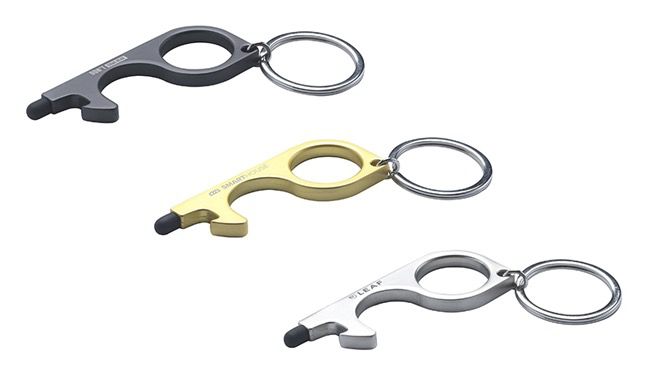 Schlüsselring aus Metall um nichts anfassen zu müssen und sich somit vor Corona-Viren zu schützen. Praktisch da es gleichzeitg auch ein Flaschenöffner und ein Touchpen ist. Durch die Verwendung des „NO-TOUCH“ verhindern Sie den direkten Kontakt mit Oberflächen wie Türen, Geldautomaten, Aufzugtasten oder, oder, oder… Mit diesem Werkzeug können Sie Türen öffnen ohne sie anfassen zu müssen. Erhältlich in 2 Metallic-Tönen und Schwarz – für jeden Geschmack etwas dabei. Wir können auch innerhalb der Auflage mischen, d. h. verschiedene Farben in einer Bestellung zusammenfassen.