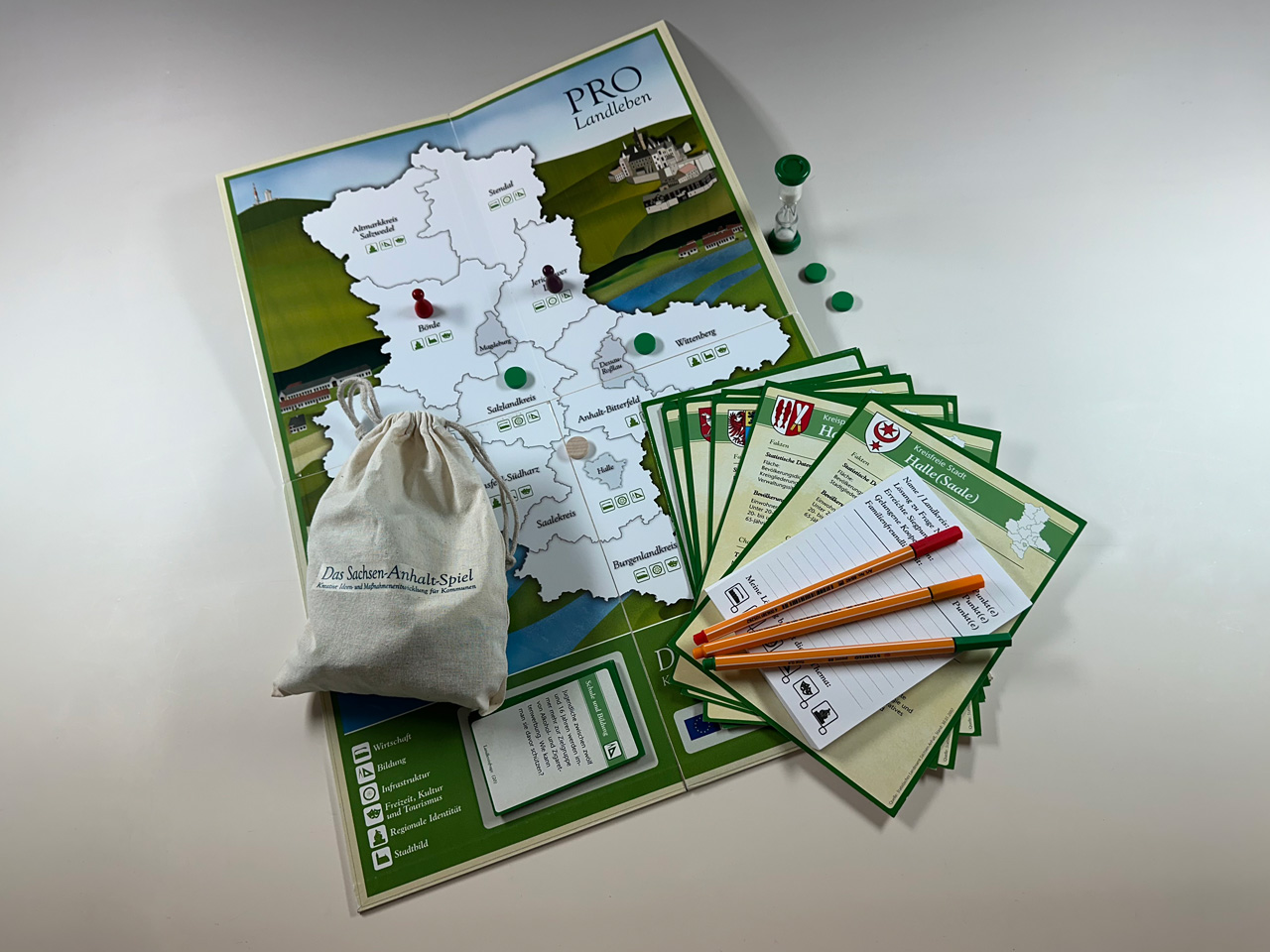 Bürgermeister, Landräte und Verwaltungsmitarbeiter entwickeln spielerisch Ideen zur Belebung ihrer Landkreise in Sachsen-Anhalts. Dabei werden kreative Ideen- und Maßnahmenentwicklungen für Kommunen gefunden. Auftraggeber für diese 60 dieser Spiele war das nexus Institut für Kooperationsmanage…
