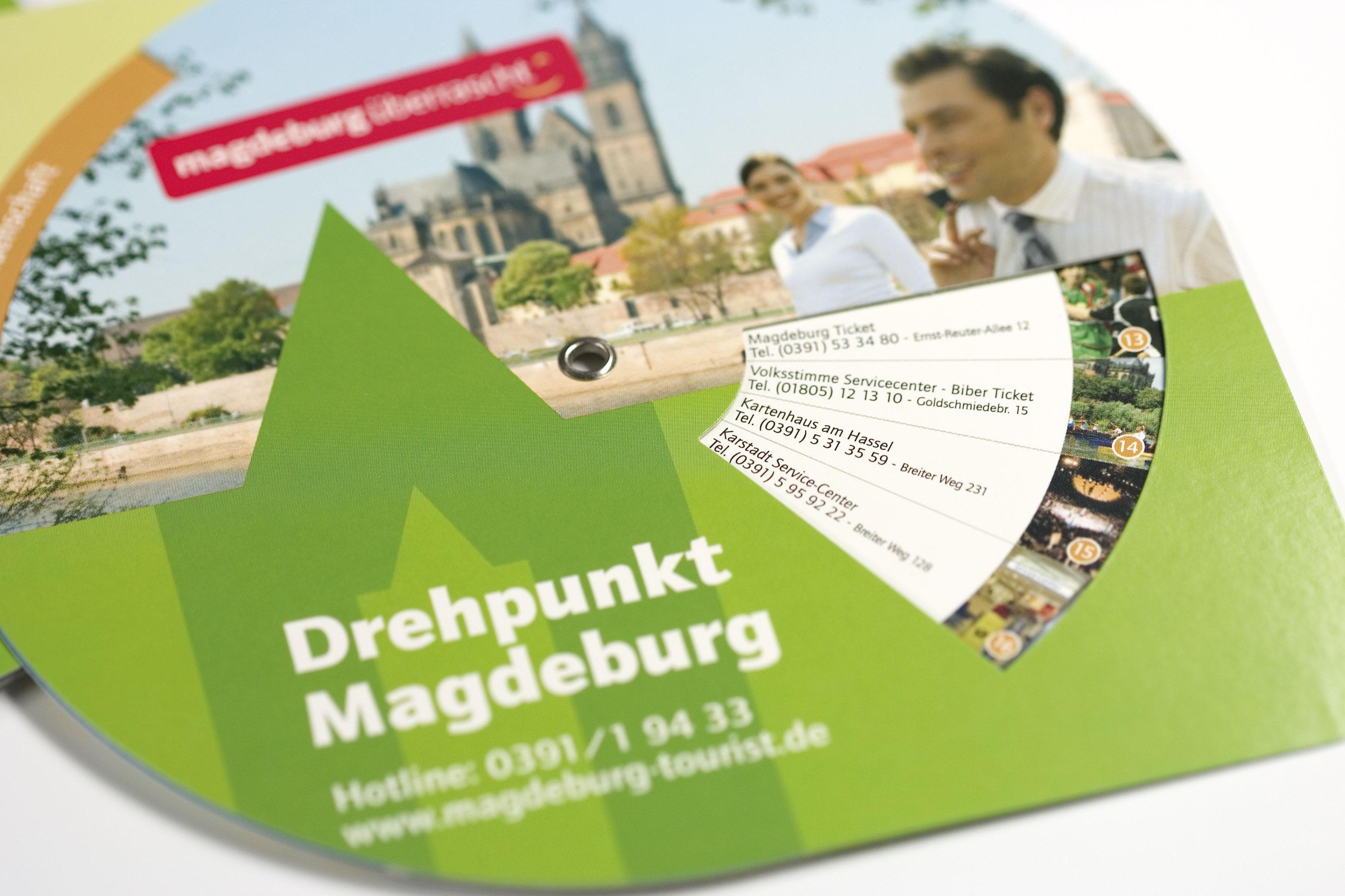 Projekt: Entwicklung und Gestaltung des Imageguide der Landeshaupstadt Magdeburg und einem Give-away in Form einer Drehscheibe